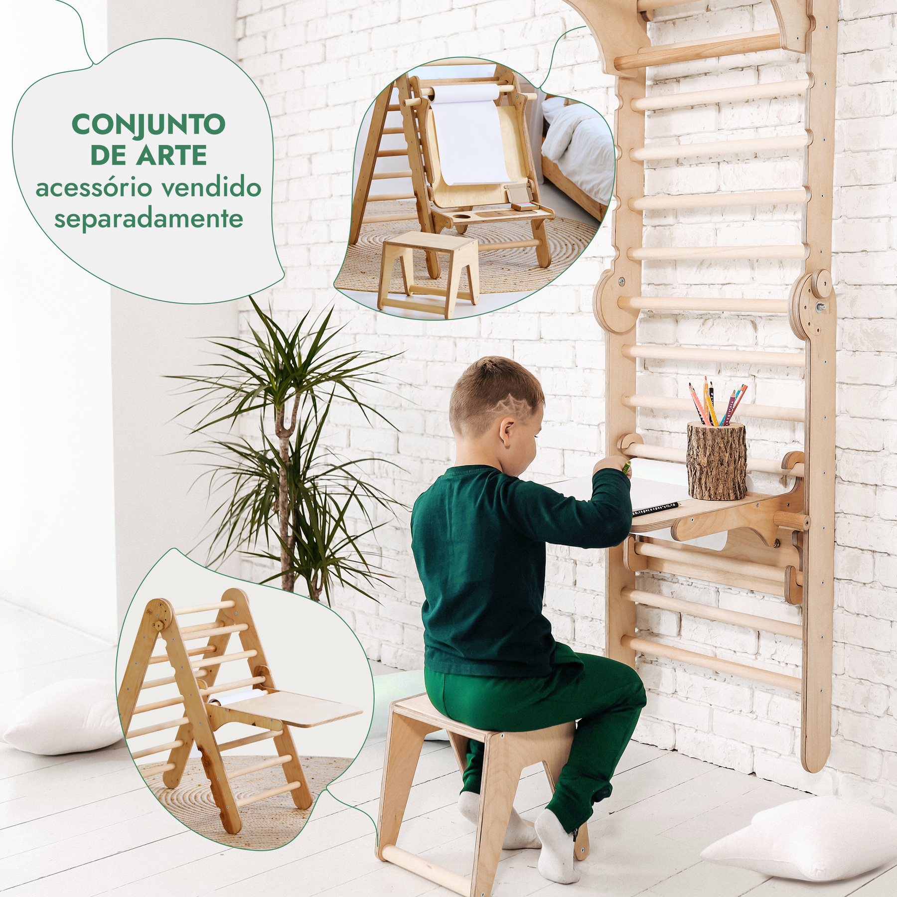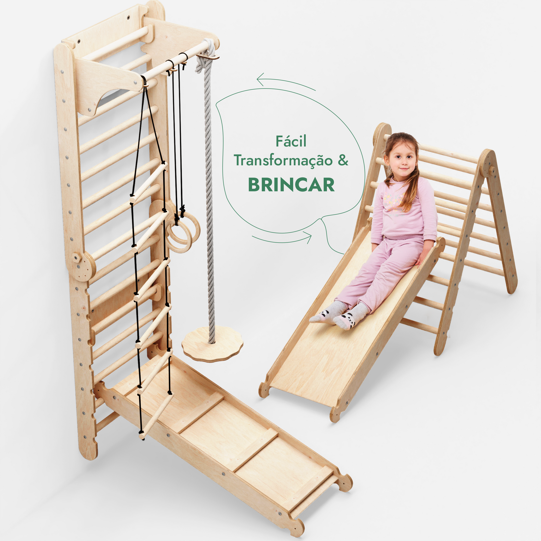 Dinamize o mundo do seu filho com a Parede de escalada (parede sueca) + Escorrega & Conjunto de Ginásio 3 em 1, uma mistura perfeita de diversão e benefícios a nível de desenvolvimento. Garanta já o seu e observe o desenrolar das aventuras!